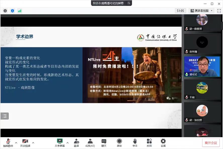 2022年12月21日下午,文传学院举办“2022文传学术大讲堂”,特别邀请到中国传媒大学博士生导师、《现代传播》副主编潘可武教授,为师生进行“如何发现传媒学术命题”线上主题讲座, 文传学院副院长郭媛媛主持活动。