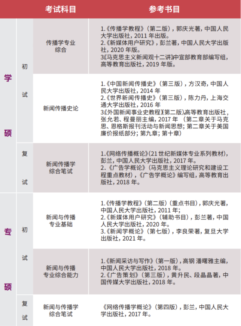考试科目及参考书目